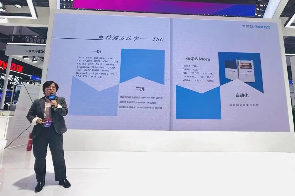 值得一提的是,,,,,,我们于展位举行了CTC专题的宣讲运动。。。。。。。中科纳泰董事长、国家纳米科学中心研究员胡志远教授受邀举行深度专访,,,,,,并为各人带来精彩的CTC检测内容——“CTC照旧ctDNA? CTC2.0时代的MRD临床应用”的宣讲,,,,,,与各人交流分享中科纳泰循环肿瘤细胞检测-肿瘤捕手手艺在临床市场的应用和生长。。。。。。。