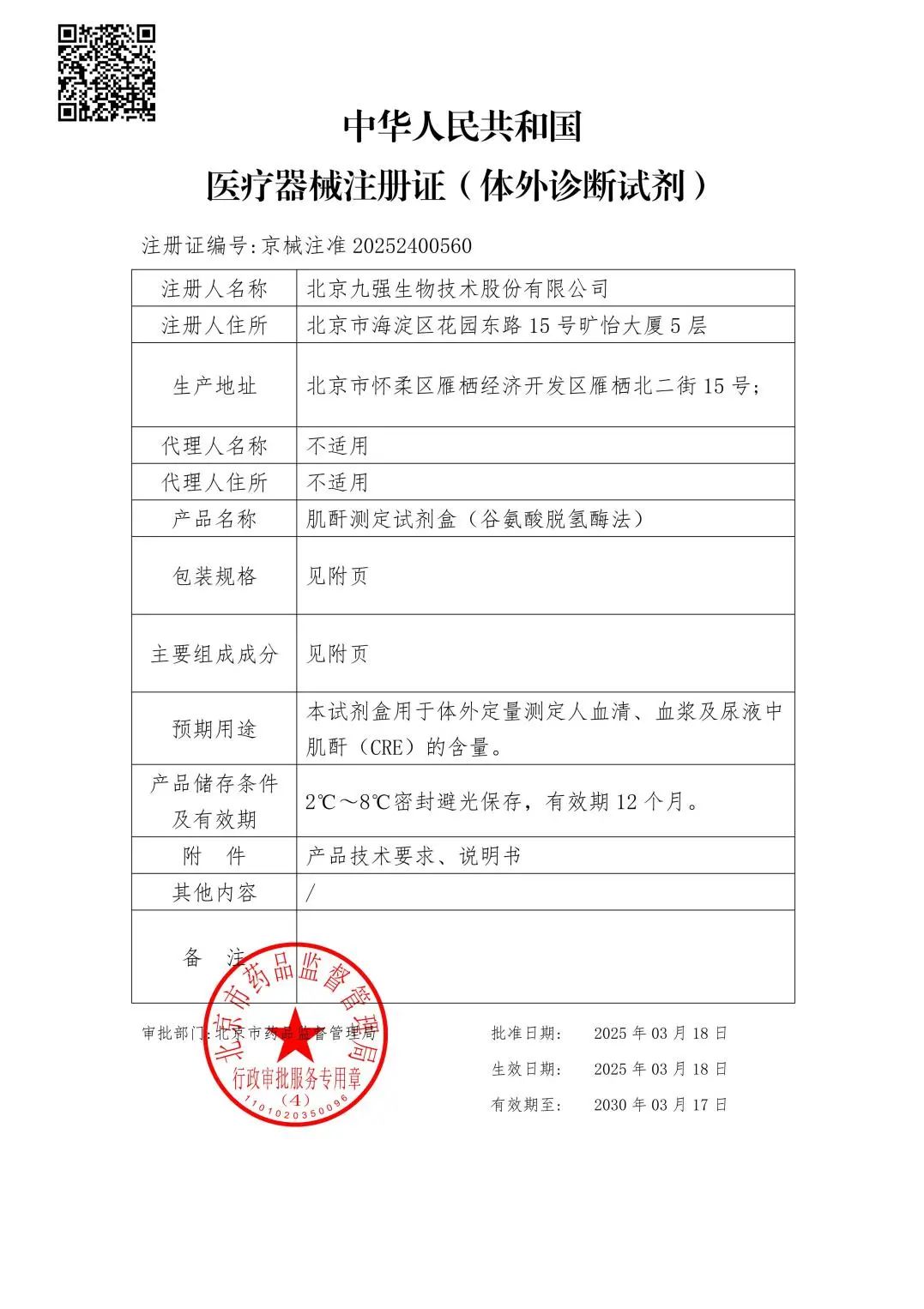 克日,,,, ,,, ,尊龙官方生物肌酐测定试剂盒(谷氨酸脱氢酶法)顺遂取得北京市药品监视管理局揭晓的《医疗器械注册证》。。。。。 。。。