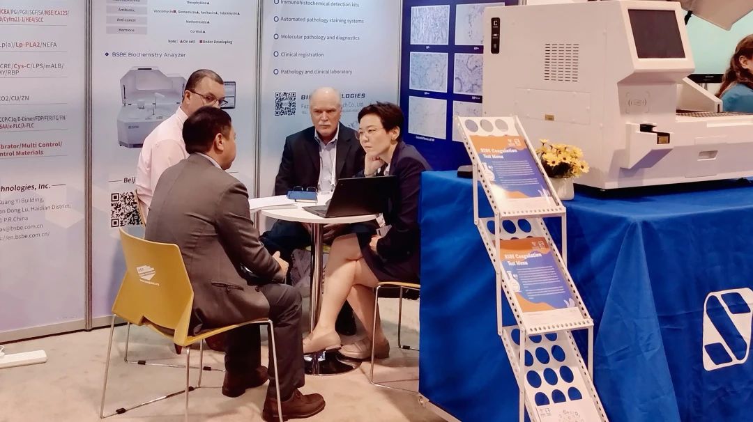 本次展会吸引了全球100多个国家,,,,,,20000多名医学专家学者的普遍关注和加入 。。。。。 。。。尊龙官方生物作为海内领先的体外诊断产品与服务供应商之一,,,,,,此次携旗下生化检测系统、血凝检测系统、血型检测系统、POCT检测系统和病理检测系统精彩亮相,,,,,,引起了参展职员浓重的兴趣,,,,,,不少来自全球各地的经销商、终端用户和专业人士纷纷驻足尊龙官方展位 。。。。。 。。。