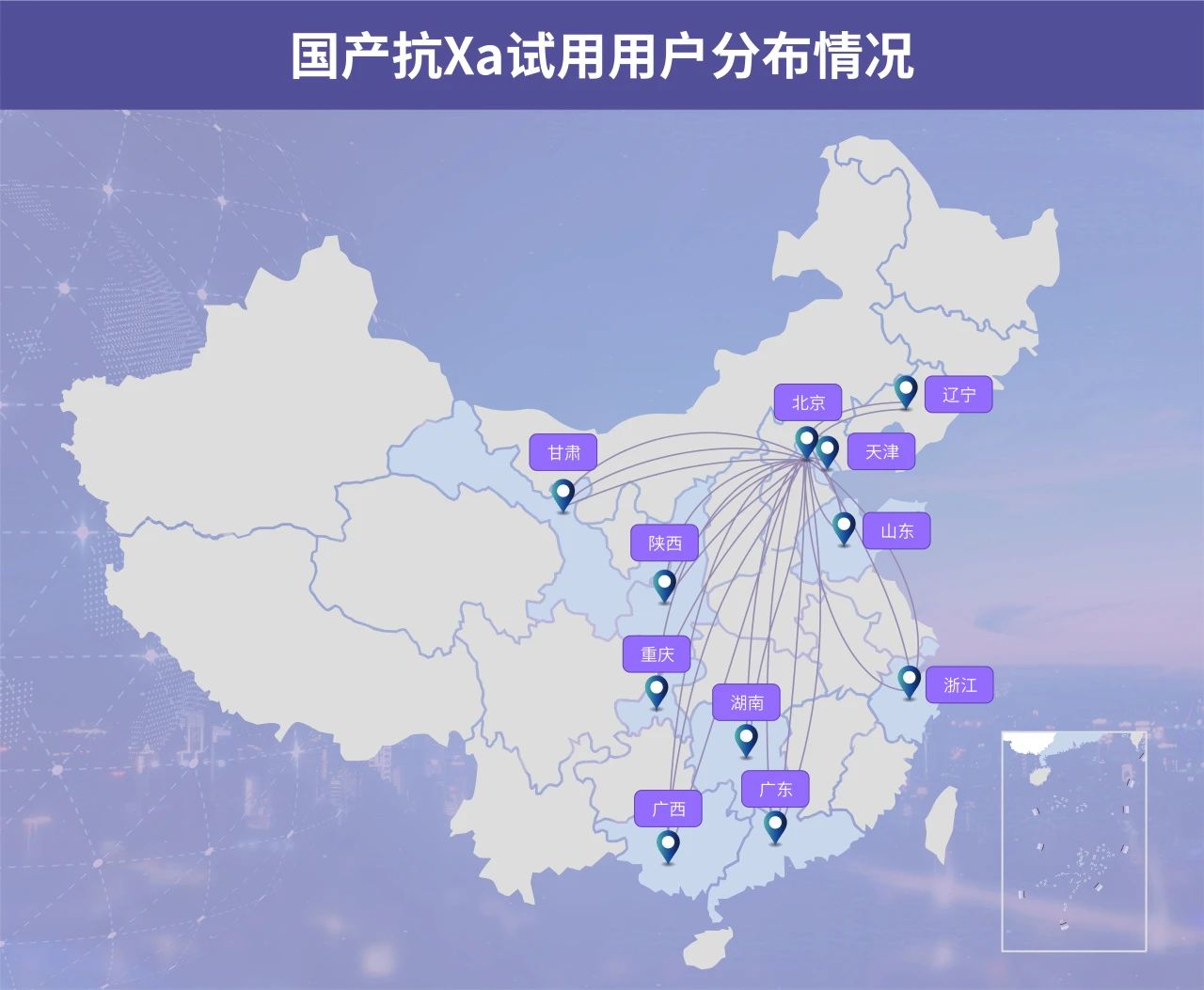 经由严酷的三甲医院多中心验证,,, ,,,,,国产抗Xa获证上市 。。。。。。尊龙官方抗Xa测定试剂盒(发色底物法)适用于三大主流机型,,, ,,,,,质量可靠,,, ,,,,,受到普遍关注,,, ,,,,,各地试用如火如荼的举行中 。。。。。。据**统计,,, ,,,,,天下已有11个省份的用户起劲加入试用,,, ,,,,,其中包括北京、天津、浙江等地的多家三甲医院 。。。。。。