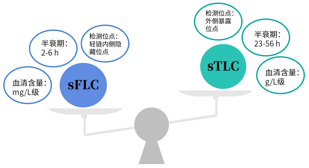 由于sFLC迅速度更高,,,,,,,半衰期更短,,,,,,,能越发实时地反应病情转变,,,,,,,为疾病的早期诊断提供更可靠的依据,,,,,,,近年来成为优于总轻链测定的标记物。。。。。。。