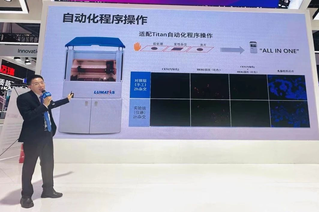 值得一提的是,,,,,,我们于展位举行了CTC专题的宣讲运动。。。。。。。中科纳泰董事长、国家纳米科学中心研究员胡志远教授受邀举行深度专访,,,,,,并为各人带来精彩的CTC检测内容——“CTC照旧ctDNA? CTC2.0时代的MRD临床应用”的宣讲,,,,,,与各人交流分享中科纳泰循环肿瘤细胞检测-肿瘤捕手手艺在临床市场的应用和生长。。。。。。。